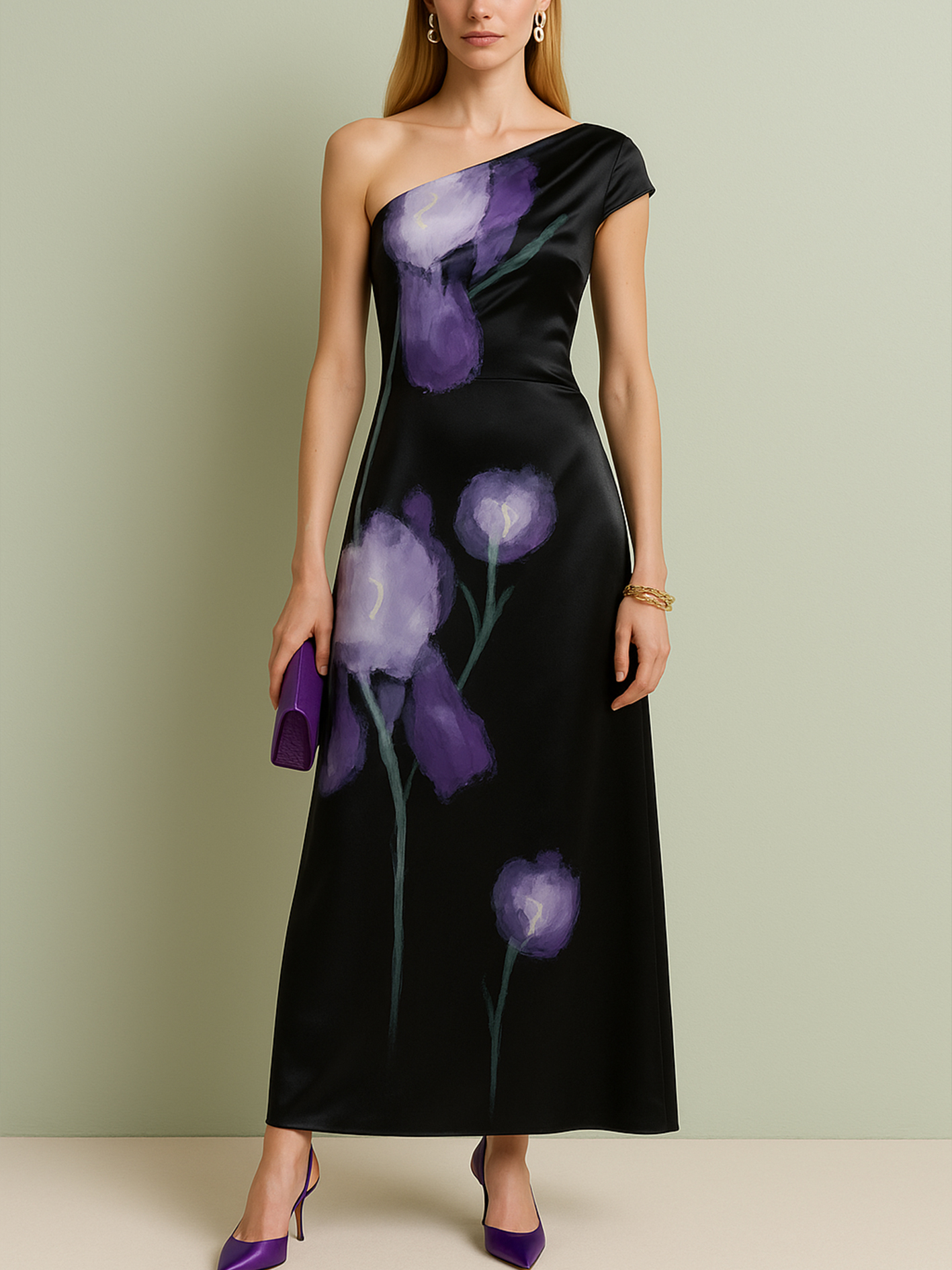 - Neckline: one-shoulder。